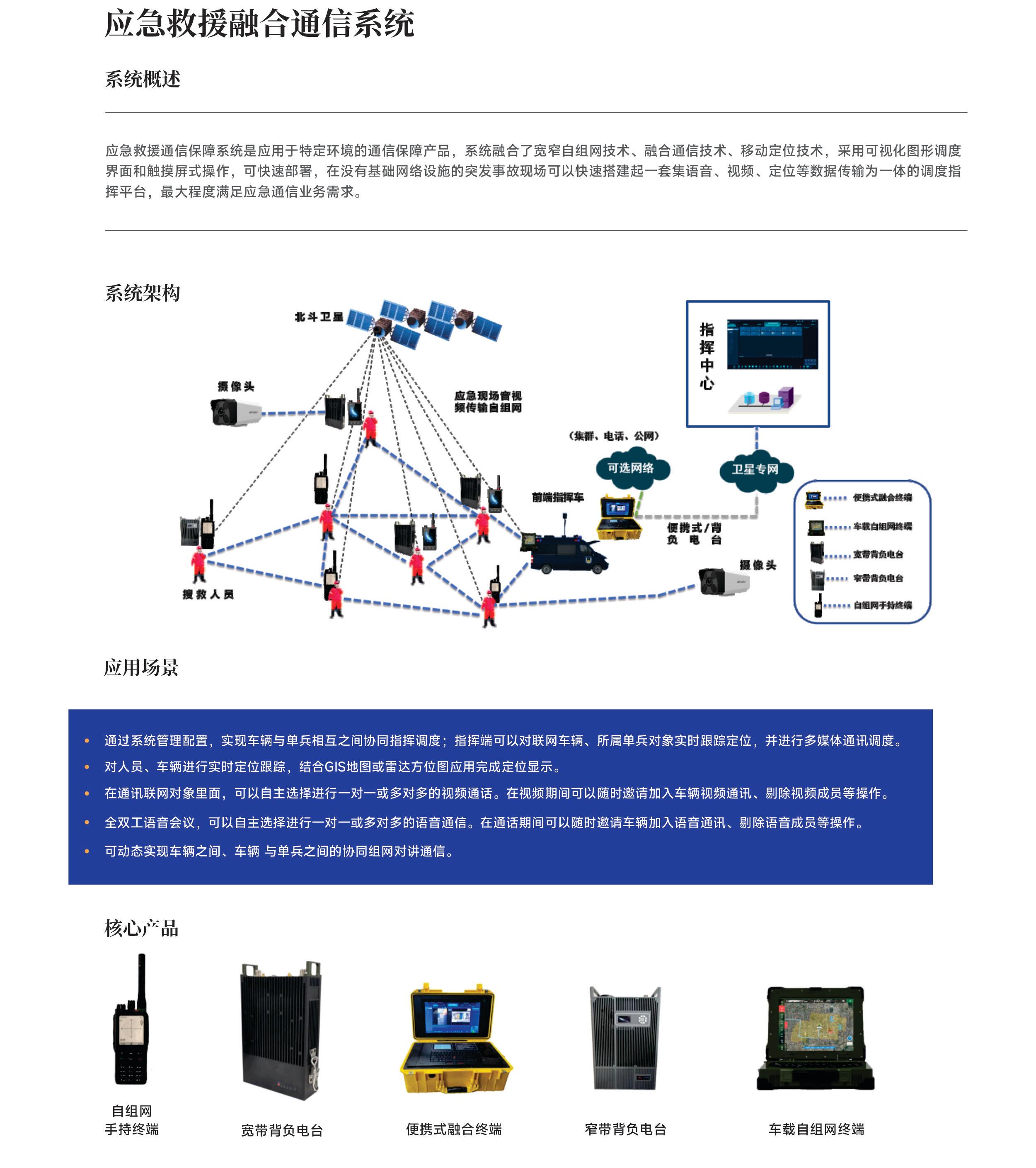 系统融合了宽窄自组网技术、融合通信技术、移动定位技术,采用可视化图形调度界面和触摸屏式操作,可快速部署